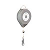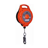 收縮式速差防墜器,配有萬向軸,鋼制O型鉤AM003塑料PC防護(hù)外殼,織帶為聚酯纖維和芳綸纖維帶下墜指示器。