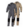 馬克2系列連體服,65%滌35%棉,袖口按鈕收緊,腰部松緊支撐,配備護膝袋及多個工具袋,輕便實用。