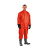 液密重型防化服,CSM Hypalon?涂層聚酯纖維,接縫硫化,高密封性防滲透拉鏈,手套靴子硫化緊固一體連接。抗多種高濃度化學試劑滲透,卓越的防酸堿性能,防火阻燃、耐UV/臭氧....