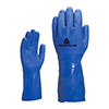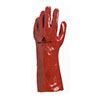 舒適版40厘米PVC防化手套,采用BASF HEXAMOLL?環保材料,潔凈無污染。平紋針織棉襯里,1.3毫米重型PVC涂層,對酸、腐蝕性溶劑有良好的防護作用。