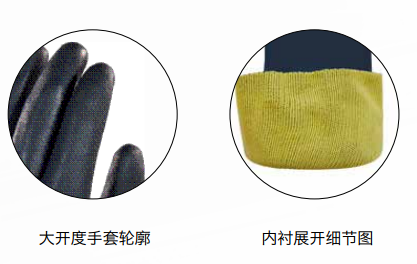 高端款氯丁防化手套,針對各種油、酸、堿、醇和多種溶劑提供全面防護。采用大開度手套輪廓,靈巧性較好,減少操作時的手部疲勞感。舒適植棉襯里,吸汗性能優異,能長時間保持手部干爽。