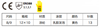 乳膠發泡針織手套,耐高溫滌綸襯里手套,最理想的通用型手套,完美乳膠發泡技術,在高壓環境下具有更強的伸展性與靈活性,同時還能降低手部疲勞感。 亮黃色配黑色涂層引人注目,更容易被看見,避免視覺誤差。優質乳膠涂層更耐磨耐撕裂。 適用于各種通用工業及搬運工作環境。