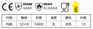 TAEKI纖維針織防切割套袖,拇指處留孔,長(zhǎng)45厘米,合理平和抗切割性能與靈巧性,有效保護(hù)整個(gè)手臂,左右手通用,短時(shí)耐熱接觸100°C。