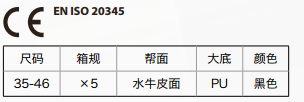 印度水牛皮鞋面,皮革厚度大于2.0毫米,特殊配方高品質雙密度PU注塑鞋底,SRC級防滑。