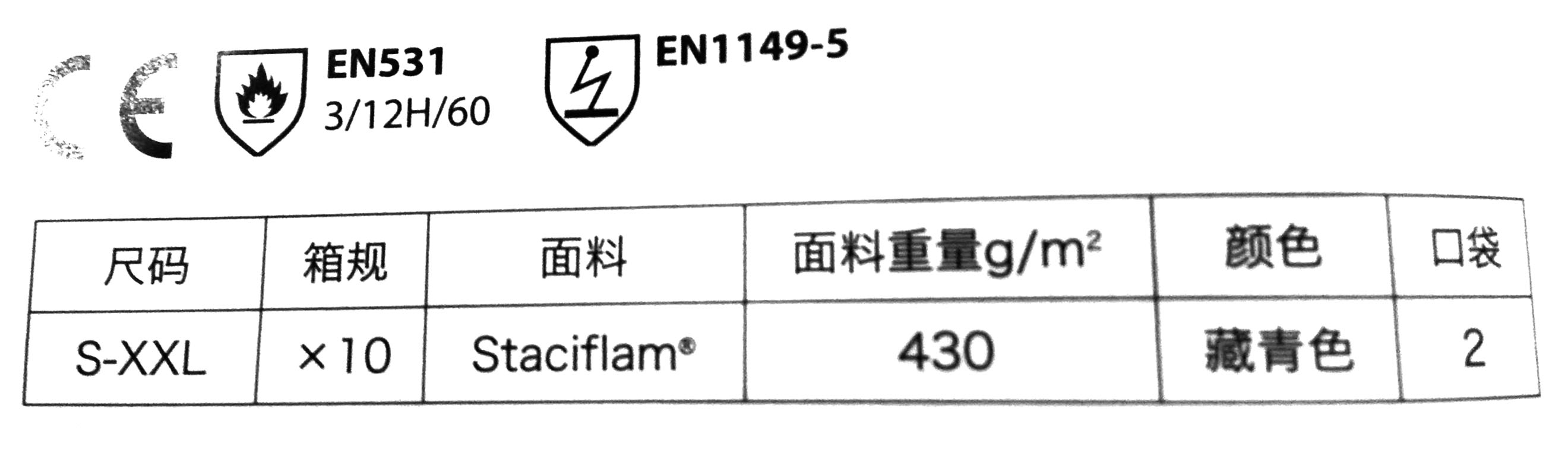 阻燃防靜電搖粒絨夾克,60% Staciflam FR 聚丙烯腈纖維和38%棉以及2%防靜電碳纖維混合織造,430克重,隱藏式紐扣領,配兩個工具口袋,簡潔實用。主要用于高可燃性等高危險環境,防止靜電釋放引發事故,也用于電子行業。