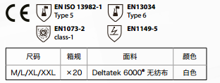 限次性無紡布連體服,100% SMMS多層復合無紡布材質,透氣性能優秀。彈性兜帽、袖口、腳踝口,防粉塵微粒,防輕度化學液體噴濺,防靜電。可用于存在石棉、酸堿性物質的工作環境。 產品僅為連體服單獨包裝,不包含鞋套與手套,手套可與本目錄一次性手套配合選用。