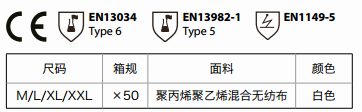 限次性無紡布連體服,70%聚丙烯+30%聚乙烯雙層復合無紡布材質,彈性兜帽、袖口、腳踝口,防粉塵微粒,防輕度化學液體滴落,防靜電。 本產品可對輕度化學液體噴濺以及有毒干燥粉塵提供保護。適用于一般石棉控制場所、油漆噴涂作業、一般保潔、維修及維護作業等。 產品僅為連體服單獨包裝,不包含鞋套與手套,手套可與本目錄一次性手套配合選用。