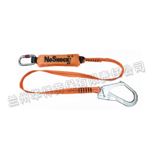 NOSHOCK系列單大鉤減震繩,聚酯纖維編織帶,配有1個鋼制O型鉤AM002和1個鋼制大鉤AM022,長1.8米,緩沖包全部打開長度3.5米,重量1.1kg,通過電力工業/電力安全工具質量監督檢驗測試中心檢測。