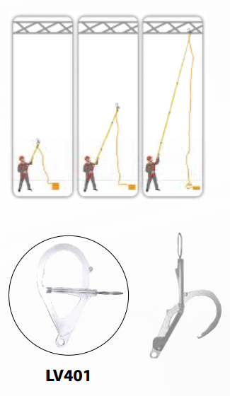 絕緣伸縮桿 玻璃樹脂材質,可收縮5節桿,桿長1.95m,最長工作范圍為9.5m。全金屬頭部允許負荷為5KG額定電壓30kV.加大鉤使用,可作為上端錨點的固定。 錨點高處連接設備與LV400配合使用主要用于高處錨點的架設。